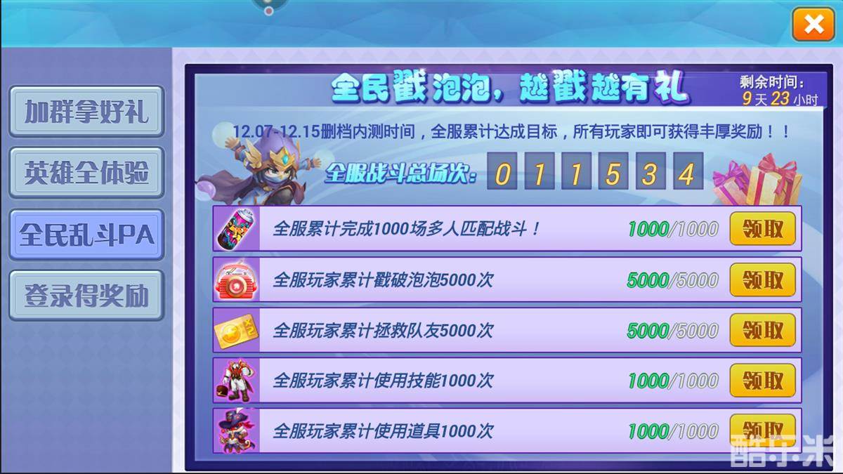 四天战斗总场次达41534次,全服玩家累计戳破泡泡10000余次,累计拯救队友10000余次,累计使用技能10000余次,累计使用道具10000余次。厉害了,我的泡友们!2天就完成了全服游戏目标!