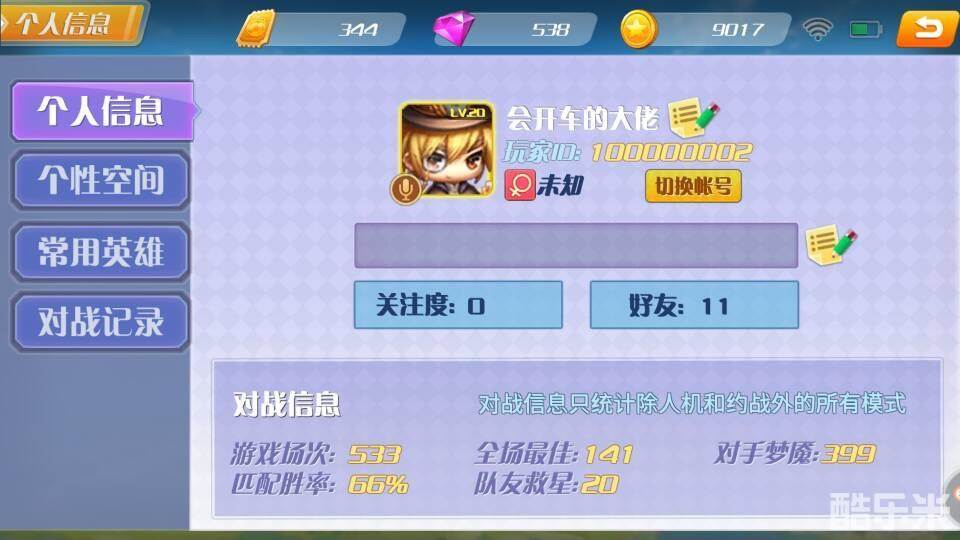 然后我们最最最最厉害的泡友就是“会开车的大佬”,五天里,他的对战场次达533次,匹配胜率66%!平均一天超过100场次,我只想说这么厉害的泡友给我来一打!