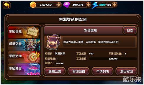 军团驻地里面,还分为了军团信息、成员列表、军团活动和军团商店,在这里,你可以充分感受到集体的温暖与荣耀!