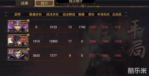 答:因为控制效果到了极致,对面3个武将的主动战法实际发动次数加在一起,平均不超过2次/场。我方受的伤害,大部分是由吕蒙的【白衣渡江】和陆逊的【不攻】这类指挥战法造成的。