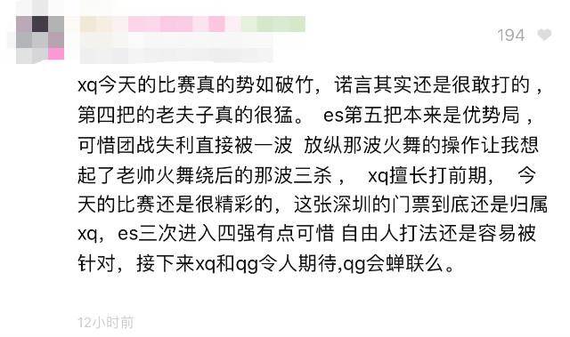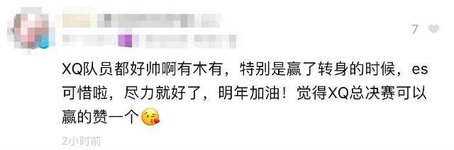 这位昵称为“遇见你时风好甜”的网友评论道:“XQ队员都好帅啊有木有,特别是赢了转身的时候,eStar可惜啦,尽力就好。”