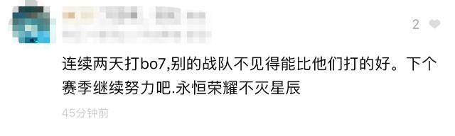 这位昵称为“空城、旧忆”的网友评论道:“连续两天打BO7,别的战队不见得比他们打得好。下个赛季继续努力吧,永恒荣耀不灭星辰。”