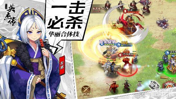 紫龙游戏最新国漫风幻想三国手游, 重磅联动腾讯动漫超人气国漫《妖怪名单》,深度合作植入《镇魂街》、《口水三国》! 游戏采用了国漫风格进行全新创作,时尚卡通技法绘制,全部顶级声优配音,全程动画剧情演绎,特邀著名国漫十字星工作室为游戏撰写原创剧情。《全民英杰传》在RPG卡牌手游的基础上,增加兵种相克、手动微操、策略制敌的玩法创新,被玩家们奉为国漫风手游的扛鼎之作!