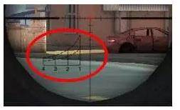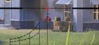 300米以上狙击枪射击子弹弹道会有所下降,所以要有一定的预判,此时应以黄点对准对方头部为佳: