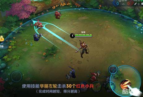 技能训练轮盘方向关卡,以马可波罗的技能“华丽左轮”进行练习,在最短的时间内击杀30个红色小兵,您还可以将您的成绩分享到社交平台。