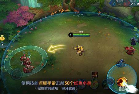 技能训练区域施法关卡,以鲁班七号的技能“河豚手雷”进行练习,在最短的时间内击杀30个红色小兵,您还可以将您的成绩分享到社交平台。