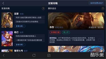 2)针对英雄攻略,我们新增了英雄四个维度(生存、攻击、难度、技能)数据包装及对比。针对英雄四个维度,分别增加了特点标签描述: