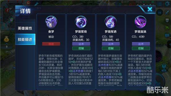 梦奇是一名拥有强悍控制技能的法坦英雄,他的技能可以对敌人造成非常可怕的控制效果,在一定程度上梦奇可以有效的牵制敌人,从而能够帮助队友在最大程度上战胜敌人。