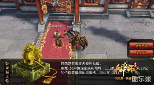 乱世之中,想要安身立命,没有一块属于自己的领地怎么能成,因此在招募了足够的家族成员之后,族长切勿忘记带领你的家族成员抢占太常,以此获得大量收益,并用以家族发展所需,在自身实力不足的情况下,可通过外交向其他友好家族借人或者与其他同水平家族互助拿下领地,当然如果你有足够的实力,不妨拿下王城。