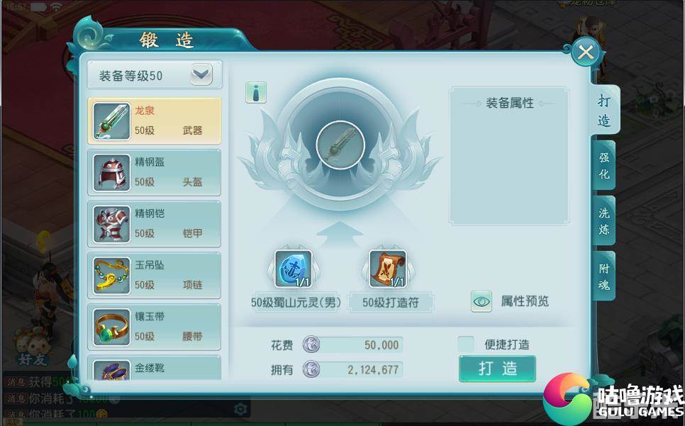 首先人物到达一定等级时会开启锻造功能,玩家满足锻造要求后进行“打造”。