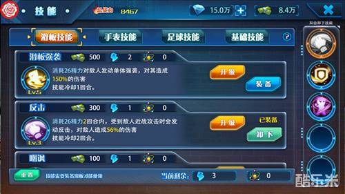 滑板技能有四个,以各种形式的伤害技能为主,伤害随着等级提升。【滑板强袭】是一个单体强攻技能,攻击有反伤效果的【反击】,技能【嘲讽】能够减伤并让敌人攻击自己,【回复打击】具有攻击吸血效果。