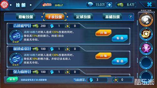 手表技能同样有四个,和动画中的麻醉针一样,手表攻击能附带各种负面效果。【音速破甲针】能降低敌方防御,【急速虚弱针】能降低敌方精力,【强力麻醉针】能够降低对方命中,【秘麻醉针】带额外攻击。这四个手表指针技能,伤害都会随着等级提升。