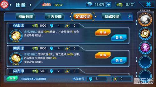 足球技能也是四个,主要是各种强大的弹射AOE技能。【弹力球】能够眩晕目标,【回弹球】能够反弹六次,【闪光求】也能反弹六次附带眩晕效果,【回旋求】能够对一排的敌人造成伤害。