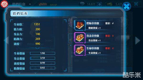 培养选项在搭档界面的下方,主要是用各种材料提升单个属性,比如加攻击的攻击饭团,加生命值的生命饭团。这些材料主要来自于游戏中的“阿笠博士的实验室”,将普通材料加工成食材用于提升搭档的属性,食材还可以进一步加工成更高级的食材,在对高等级的伙伴也能产生作用。