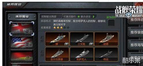 除可根据自身需求对阵容进行定制外,《战舰荣耀》也将为指挥官推荐不同的国家阵容,大家可根据推荐阵容进行战舰收集与搭配。如此一来,新手指挥官也可以随时拥有实力强大、不同属性的最佳阵容。