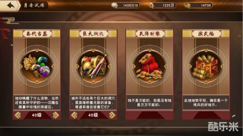 随着《一骑当千2》越来越火热,在获得玩家们喜爱的同时,游戏自身也在不断的完善与发展。曾经勇者试炼只有两种模式:秦代古墓以及巨大洞穴,秦代古墓是玩家们获取马匹突破石以及粮草的地方,而巨大洞穴则是玩家们获得装备的主要来源之一。