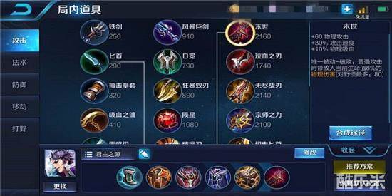 出装推荐:巡守利斧+急速战靴+泣血之刃+暗影战斧+无尽战刃+纯净苍穹