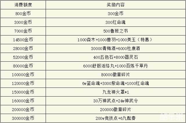 【活动内容】活动期间,游戏内累计消费达到对应金币,即可获得对应奖励;所有商品绝对超值,不信你自己看。相中哪个千万别手软!因为一犹豫也许就不知道何时能再见了。