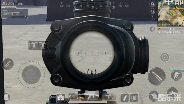 而在实战策略中,以猥琐为主,在移动过程中尽量选择贴墙行走,或者一切其他安全的路线。对于某些热点位置可以事先埋伏,占领战术制高点,推荐高建筑平台或者房屋窗口。如果在草地上,因为草丛会影响视野,此时可以选择蹲式,保持最佳距离静候其他玩家。