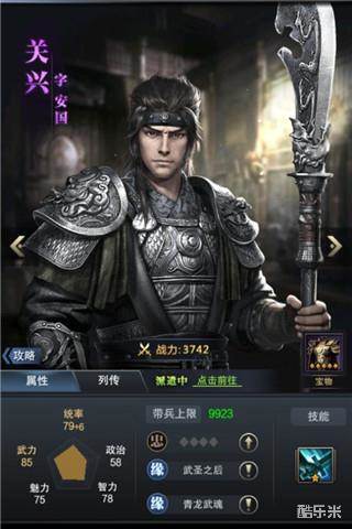 而关羽的缘分武将,是其次子关兴,集齐这两个武将,主公便能激活全军士兵攻击力增加2%的缘分效果。只有主公的士兵质量提高了,才能在任何杀敌活动中取得优越的成绩,所以,关羽的加入,相当于为主公们助力,让主公们如虎添翼。另外,攻打土匪等能获得名品的活动,主公们可千万不要错过,获取名品为武将增加忠诚度,特别是给武力武将,增加的攻击力,能使全部士兵质量都提高。
