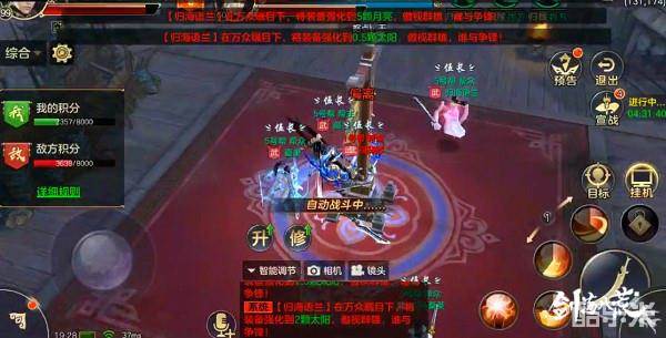 在这样的武林大势下,《剑荡八荒》为玩家们带来了激情的国战玩法,同时开放据点战、迷宫战、4V4战队赛等八大战役玩法。立体化多维度的战斗体系,满足了不同层次玩家的需求。而国战时,各大阵营玩家千人同屏酣战,战斗快感爆棚。