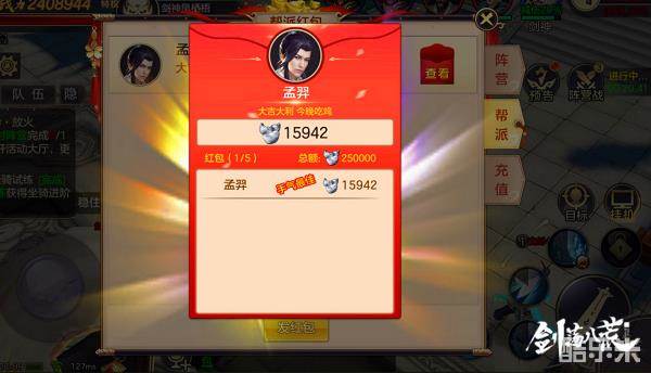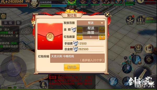 现今,风靡于各大社交软件的“抢红包”玩法也被移植到了《剑荡八荒》,只要玩家达到一定等级,且小有积蓄,即可在帮会或阵营范围内发放红包,与亲友们一同体验抢红包乐趣。
