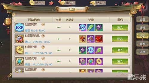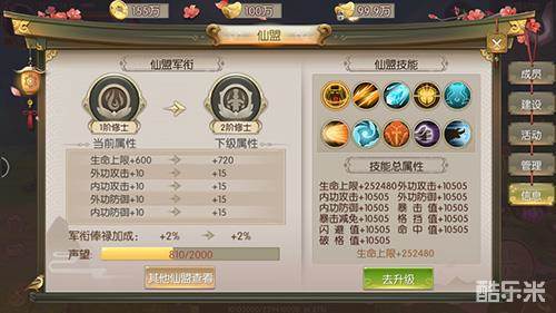 仙盟是情义相投的小伙伴们相聚的大本营,当你达到一定等级,就可以开启仙盟功能啦!那么,加入仙盟有什么好处呢?嘿嘿,好处可多了去了。首先,加入仙盟就可以领取每日俸禄,俸禄的多少就要看你的活跃度和对仙盟的贡献了;其次,参加各种仙盟活动获得的仙盟贡献,还能在仙盟商店里购买各种稀有道具;另外,仙盟军衔和仙盟技能能够大幅提升角色的生命、攻击、防御、暴击、命中等属性,所以加入仙盟还是很有必要的!