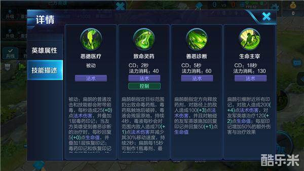 解析:主要输出和唯一的控制技能,可以在指定地点施法,并对其中的单位造成减速和持续伤害,虽然该技能的冷却时间较长,但它可以储存使用,能让扁鹊更快的叠加毒药印记。