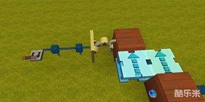 5.推拉机械臂后面也接上电能线和开关,这个开关直接控制的是推拉机械臂的伸缩,从而控制木板放置在哪个电能增幅器前面,放在通电的电能增幅器前则整个电路通电,放在未通电的电能增幅器前则整个电路无法通电;