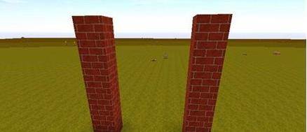 1.首先方块搭两根门柱,宽度高度自己定;