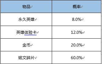C 幸运英雄宝箱中,物品产出概率公布如下: