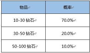 B 钻石买荣耀播报中,物品产出概率公布如下: