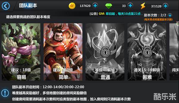 团队副本每日开启时间是:12:00-14:00和20:00-22:00