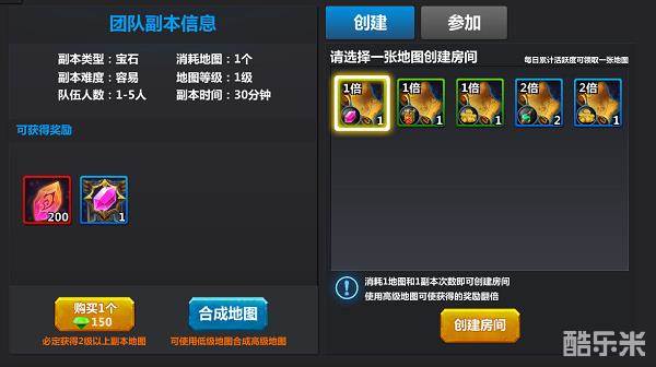 创建副本房间需要消耗副本次数和副本地图。加入房间只需消耗副本次数!