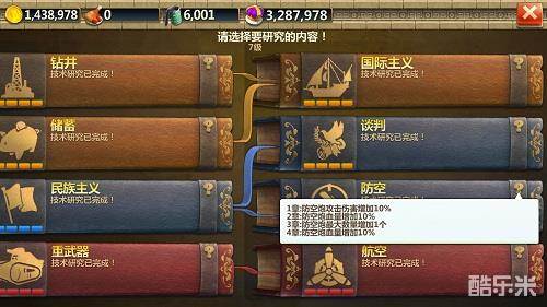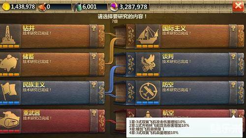 除了建筑和各项空中军事力量的发展之外,本次工业2.0还将带来新的科技,图书馆第七章正式开放。谈判、防空、航空等新的研究方向开启。和平时间延长,空中军事力量加强建设都可通过科技研究实现。科学是第一生产力,让科技引领文明发展。