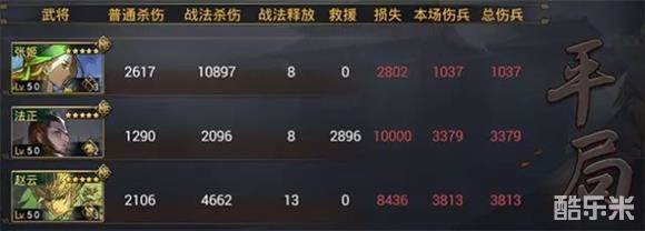 张姬+SP赵云的搭配,可以辅以法正配合,提升【将门虎女】和【银龙孤胆】的触发,增加输出,克制回血。张姬携带【愈战愈勇】,也有机会刷新【将门虎女】,避免连续无效。法正用蜀关羽代替,使用【形兵之极】也可以。