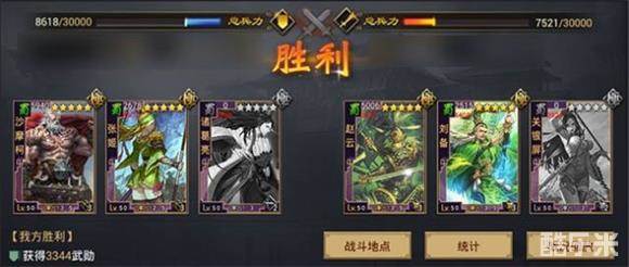 【胜兵求战】和【始计】这次更新也一起调整了(下回分析),【胜兵求战】高几率跳过准备回合,加上张姬的克制回血、【连环】的大营伤害,将斩首进行到底。前锋位置亦可使用SP赵云、法正、弓诸葛代替,也有不错的效果。
