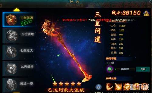 神兵激活之后各自都可以进行提升。神兵战力提升主要包括三个方面:等级、技能和升星。