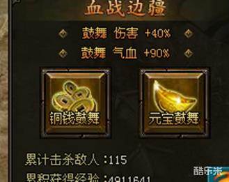 战国之怒血战边疆,一个我们必须参与的练级方式,每天只能免费进入1次,一次的进入可以让我们的等级提升一次,而在游戏中零点的时候是可以重置回来的,我们在游戏中的经验是通过击杀敌人来获取的,我们如果战斗力不是特别强劲那么可以选择鼓舞来增加我们的战斗力,使用金币鼓舞可以使用50000铜钱提升,而最多的提升也只能到气血和伤害增加百分之五十,而元宝鼓舞,每次使用10元宝最高能够让我们的伤害增加百分之百,另外如果玩家朋友时间充裕最好购买1.5倍经验卡,这个时候用非常给力,经验增加速度非常快,让人感觉完全不一样。我们在血战边境中特定的时间内杀怪越多,我们怪物的档次也逐步的提升战斗力也不断的加强,打起来非常的过瘾。