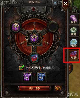 蓝色装备+5个紫色装备碎片+熔铸石,有几率获得姿色装备。
