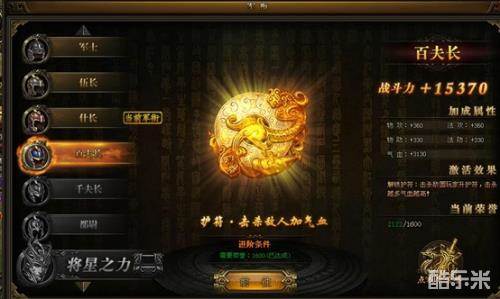 伴随着等级的增长,玩家应该按照提示及地提升军衔,提升军衔将获得各种属性的加成,从而提高玩家的战斗力。