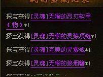 探宝这样的玩法在游戏中对于人民币玩家来说是一个非常好的位置,因为我们在游戏中使用元宝进行探宝,我们可以在这个玩法当中获取100级以上的灵魂装备、超极品护腕等等,我们在游戏中探宝花费是20元宝一次,紫色装备获取非常容易探宝5次基本能够获取2-3件100级以上的紫色装备,所以对于人民币玩家来说,适当的花点小钱,弄一身极品的紫色装备难度并不高,2000元宝100次就可以让我们穿戴上橙色套装了,但是笔者建议大家等级达到140以上再开始探宝,否则我们等级低,探宝获得好装备也无法穿戴,而且在我们成长过程当中也有可能获取一定的好装备。