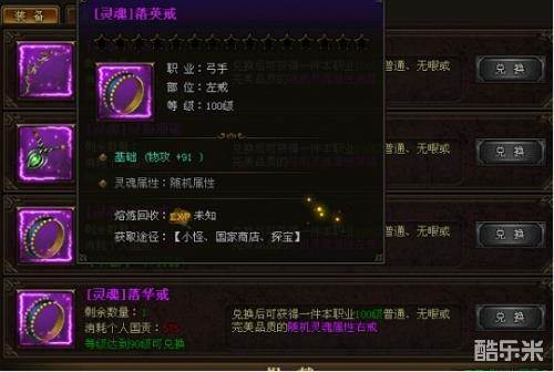 灵魂装备,这个玩法是我们在游戏中,系统为了让我们的装备不至于太差给我们准备的一个比较新颖的装备获取方式,我们在游戏中点击灵魂装备,系统可以给我们提供一些获取灵魂装备的方法,比如在国家商店兑换、BOSS掉落、充值VIP、七日登陆奖励等等,如果我们的灵魂装备收集成功之后就可以获得相关的奖励,有奖励荣誉值,也有奖励高级装备的,在这个玩法当中我们可以充分的感觉到,装备获取的方法非常多样,但是具体我们需要多长时间,能够获得什么样的装备,那同样需要看我们在游戏中的运气好坏。
