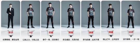 游走:新秀选手、国服路人王、是团队核心carry点。该选手具有极强的个人操作,冷静的打团思路,团队输出永动机。他的操作可以让对局瞬息万变,拥有改变战局的能力。随队获得2017年KPL秋季预选赛第一名。