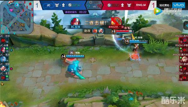 在中期,虽然纵情对于野区掌控出色,但是团队的整体人头数落后,敌方也专注于清线经济差并不大。这也跟敌方的中路嬴政的强势有关,在这个时间段纵情选择偷塔为团队带来优势,在纵情偷完上路的二塔之后,敌方的重心稍稍偏移于上路,这也给JC整个团队带来了优势,他们连续拿了两个暴君来提升团队的实力。