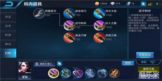 巡守利斧在前期提供不错的血量,提高打野收益和续航能力。