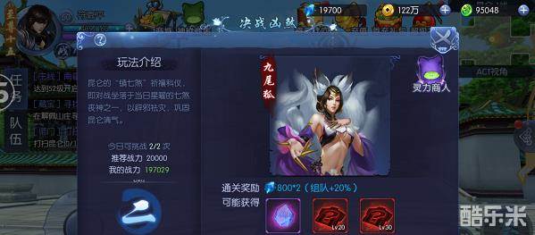 点击主界面右下角的“活动”按钮,在组队标签中能快速找到“决战凶煞”。如图所示,决战凶煞每日可挑战2次,不消耗体力。可以组队后由队长带领进入,也可以单人匹配进入。但组队进入可以增加20%的收益哦!收益更佳,还不快快组起来!