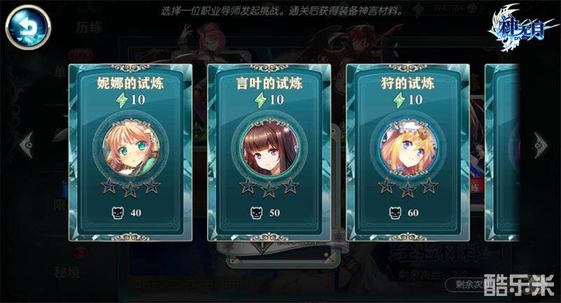 在对抗渎神者的冒险中,面对一个又一个强大的怪物,守护者大人们要不断增加自己军团的战力,神言之术的出现无疑是变强的一大利器。通过增加装备的属性来增加战斗力,是无数守护者想要得到的绝密之术。想要获得强化神言的材料灵力,就需要各位守护者大人们凭借自己的实力到单人历练副本—职业试炼中进行探索啦。还等什么,想变强就快来开启你的神言之术吧!