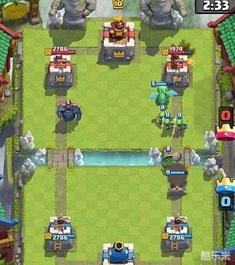 而飞斧屠夫和飞龙宝宝都是较为灵活的AOE卡牌,特殊情况下搭配飓风法术效果更佳,而小骷髅则是一个拉扯赚费的防守卡。