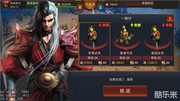 在“一骑讨”模式下,又针对兵种互克玩法给出了明显提示,决定派遣那支部队一目了然。
